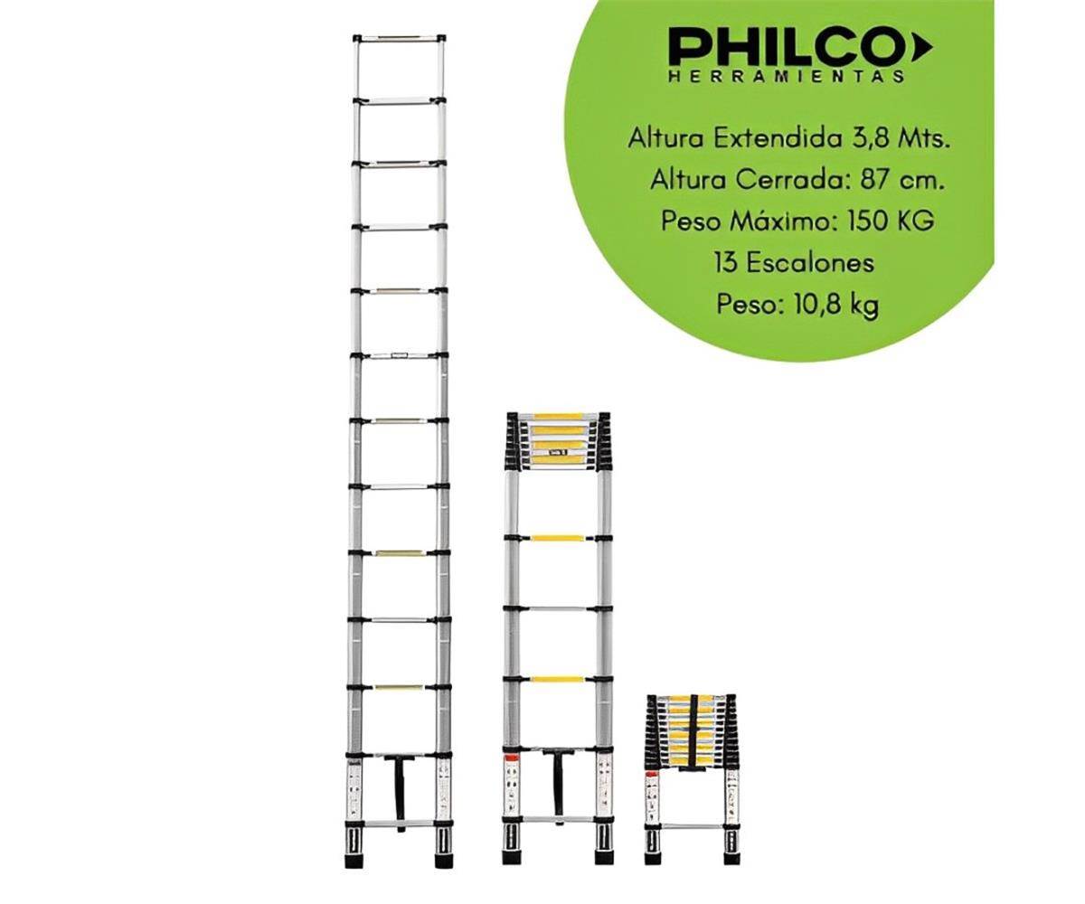 ESCALERA DE ALUMINIO 3.8 MTS DE ALTURA PESO 10.8KG CANTIDAD DE ESCALONES: 13